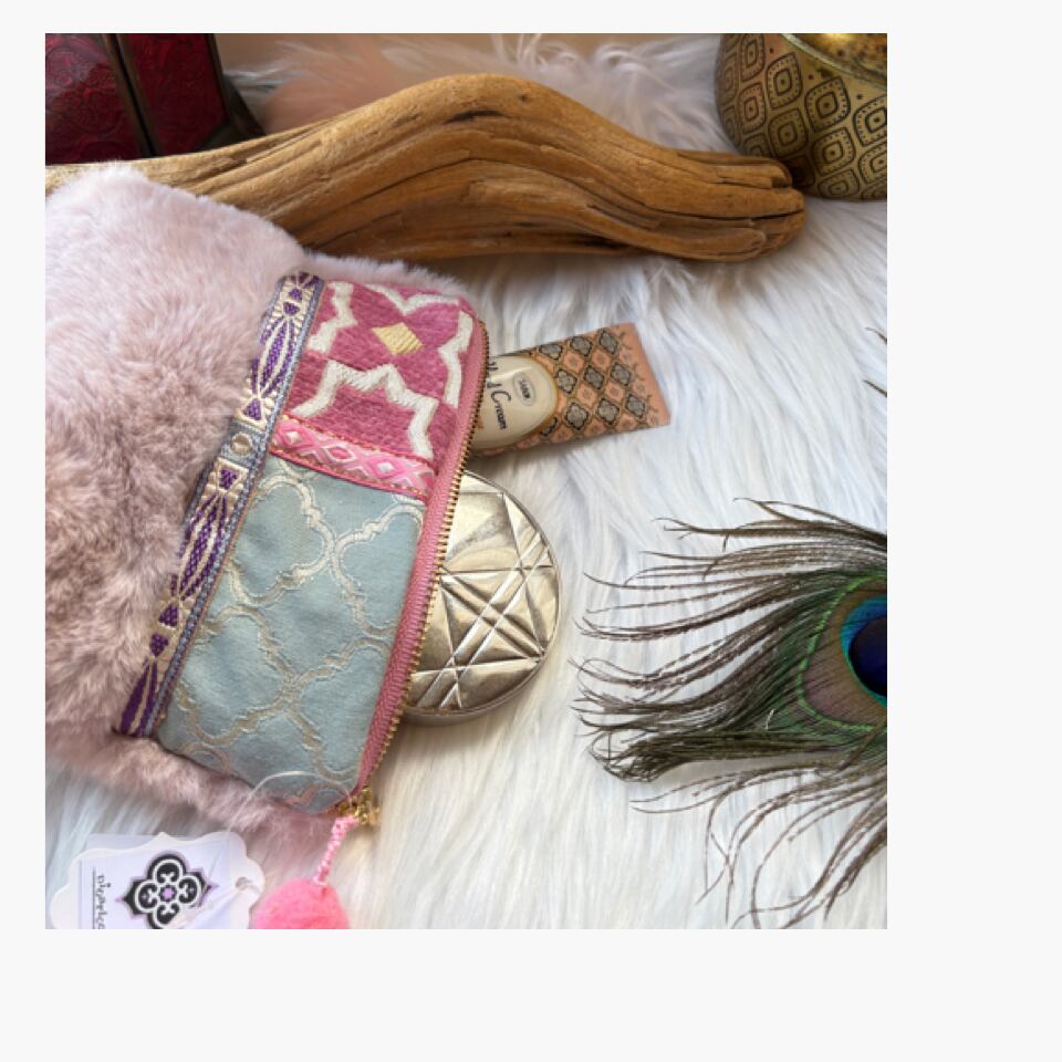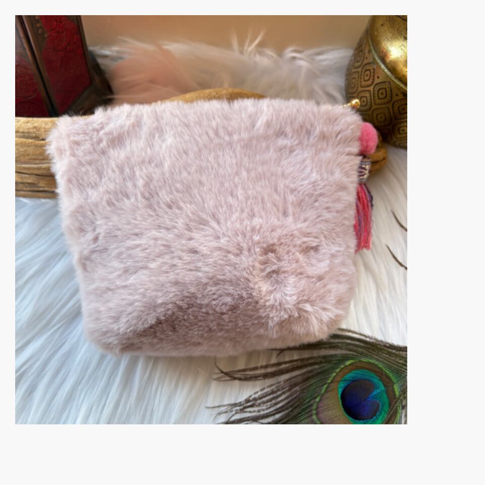 ◉商品名 【 ピンクモロッコファーポーチ】 ♦︎フェミニンでラグジュアリーなモロッコ♦︎ 柔らかくモコモコ仕立てたピンクパープルの色味のフェイクファーが特徴のポーチです。